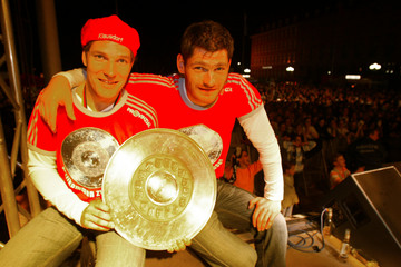 | Meisterfeier auf dem Kieler Rathausplatz und müde Helden. Von links Marcus Ahlm, Christoph Schindler und Stefan Lövgren. | Meisterfeier auf dem Kieler Rathausplatz: Marcus Ahlm mit der Meisterschale. | Meisterfeier auf dem Kieler Rathausplatz: Marcus Ahlm mit der Meisterschale. | Meisterfeier auf dem Kieler Rathausplatz: THW-Kapitän Stefan Lövgren lässt die Meisterschale nicht mehr los. | |||