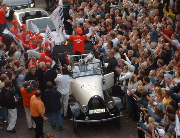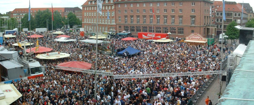 | Prost! | "Titelverteidiger" Björn Goos. | Die Stadt Kiel gratuliert dem THW. | Hein Daddel auf dem Rathausbalkon. | |||