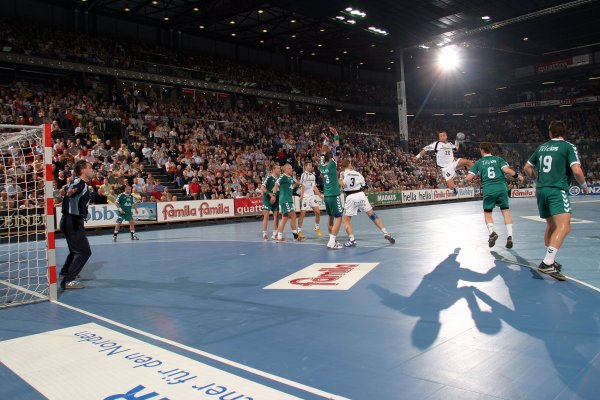 Frode Hagen in seinem ersten Spiel in der Ostseehalle für den THW. Spielszene gegen Minden.