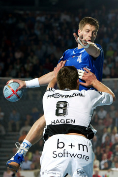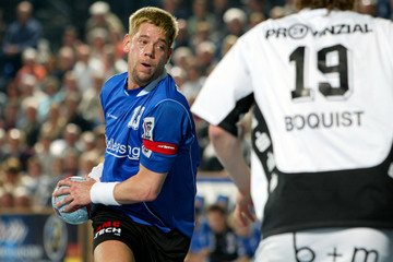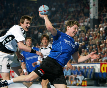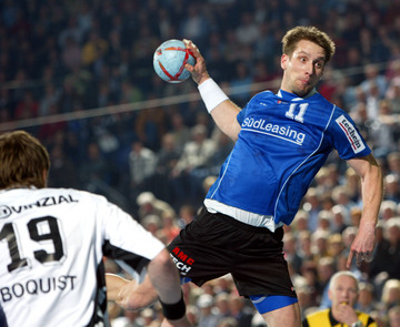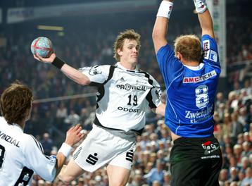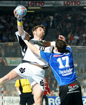 Stefan Lövgren im Zweikampf mit Pfullingens Marco Bräuning.