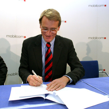 Der Vorstandsvorsitzende der mobilcom AG, Dr. Thorsten Grenz, unterzeichnet den Sponsoren-Vertrag mit dem THW Kiel. Der Vorstandsvorsitzende der mobilcom AG, Dr. Thorsten Grenz, unterzeichnet einen Sponsoren-Vertrag mit dem THW Kiel und präsentiert zusammen mit THW-Geschäftsführer Uwe Schwenker die neue Werbung auf dem THW-Trikot. Der Vorstandsvorsitzende der mobilcom AG, Dr. Thorsten Grenz, im Trikot des THW Kiel. THW-Torhüter Henning Fritz präsentiert die  Trophäe zur Wahl zum Welthandballer des Jahres 2004.