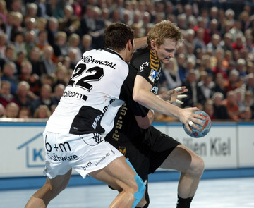 Dominik Klein beim Gegenstoß. Lars Christiansen. Jubel auf der Kieler Bank. Stryger wird behandelt.