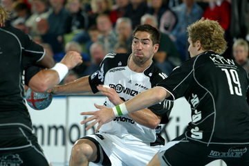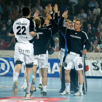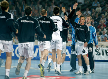 Christian Zeitz führte den THW als Kapitän in die Halle. Christian Zeitz führte den THW als Kapitän in die Halle. Sven Lakenmacher und Nikola Karabatic. Nikola Karabatic.