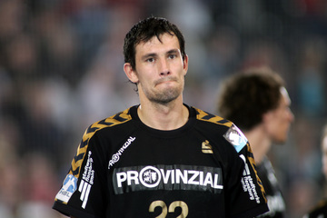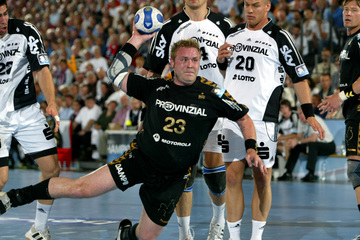 | Von Behren attackiert Nikola Karabatic. | Christian Zeitz gegen Lars Christiansen. | Dominik Klein. | Karabatic gegen von Behren und Nielsen. | |||