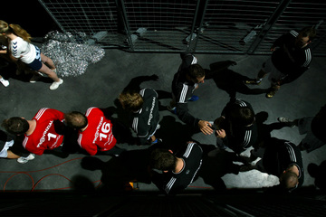 | Marcin Lijewski im Angriff. | Der THW schwört sich vor dem Einlaufen in den Katakomben der Campushalle ein. | Letzte Anweisungen von "Noka" an "Mini". | Letzte Anweisungen von "Noka" an "Mini". | |||