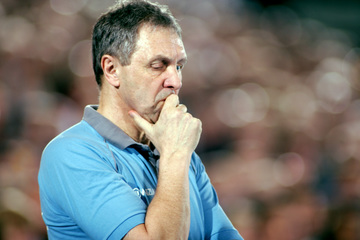 | Der rot gesperrte Ljubomir Vranjes und sein Coach Kent-Harry Andersson. | Andrei Xepkin jubelt. | Vid Kavticnik trifft. | Kent-Harry Andersson nachdenklich. | |||