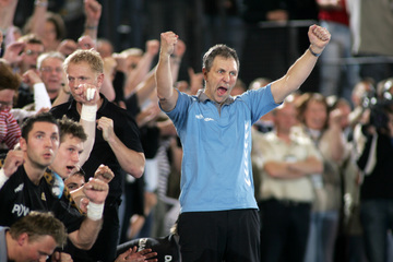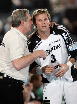 | Letzte Anweisungen von "Noka". | Uwe Schwenker blickt Richtung Champions-League-Pokal. | Die Bank der SG. | Der rot gesperrte Ljubomir Vranjes und sein Coach Kent-Harry Andersson. | |||
