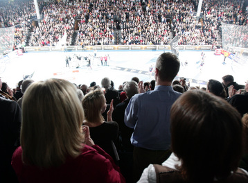 Vor dem Anwurf. Filip Jicha wird gestoppt. Marcus Ahlm setzt sich durch. Henrik Lundström.