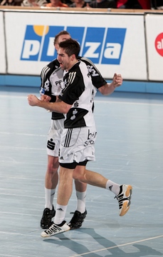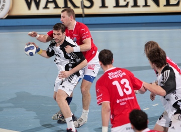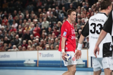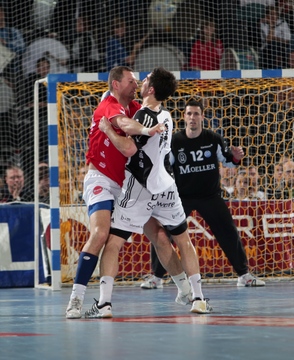 Frei am Kreis. Der Coach. Spielszene. Nikola Karabatic wird festgemacht.