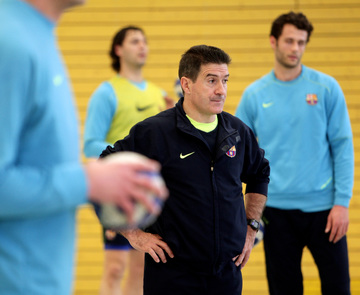 Der Anwurfkreis. Der Anwurfkreis. Barcelona Team-Manager Xavier O'Callaghan. O'Callaghan, Xepkin und Masip.