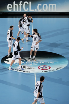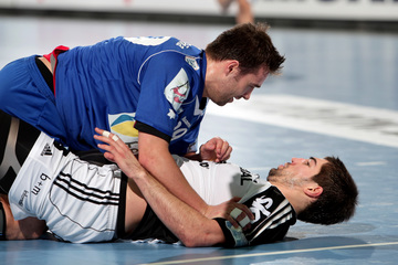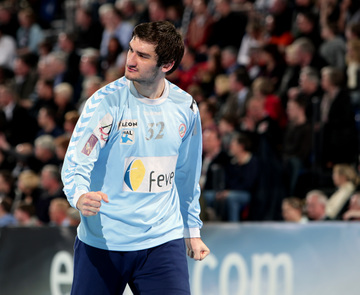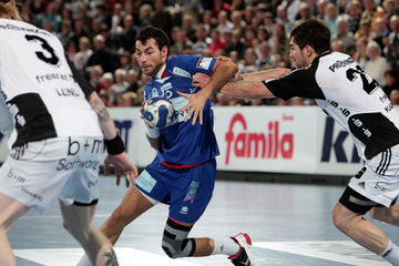 | Leons Trainer Jordi Ribera. | Marcus Ahlm wird von Tonci Valcic unfair gestoppt. | Nikola Karabatic wird attackiert. | Mirko Alilovic. | |||