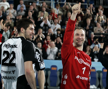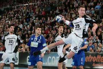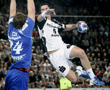 | Christian Zeitz. | Martin Stranovsky. | Karabatic attackiert Sarmiento. | Treffer! | |||