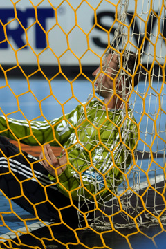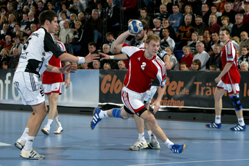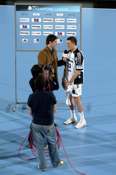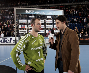 Vor dem Anwurf. Thierry Omeyer im Eurosport-Interview. Spielszene. Pressekonferenz.