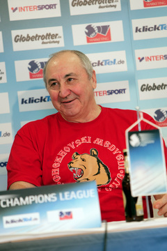 Pressekonferenz. Nach dem Spiel. Maximov reklamiert. Vladimir Maximov.