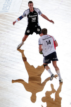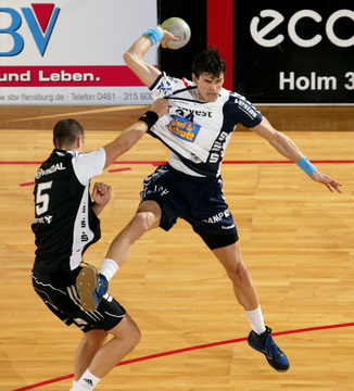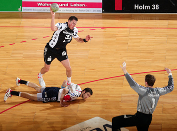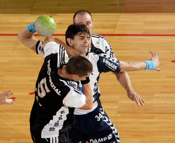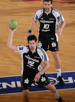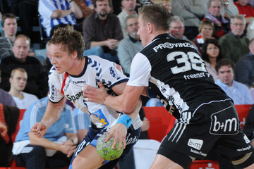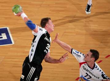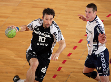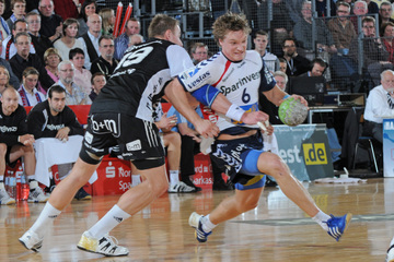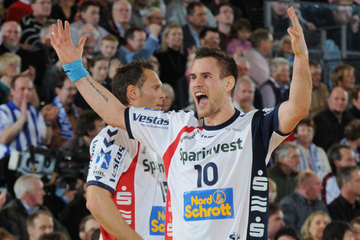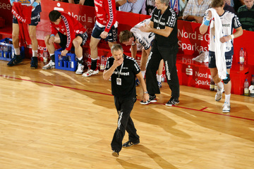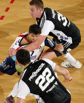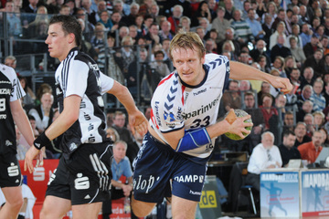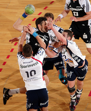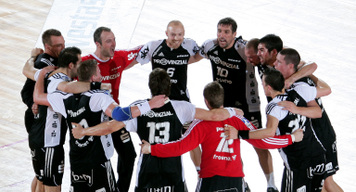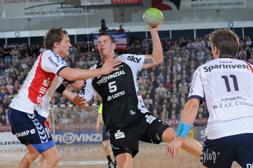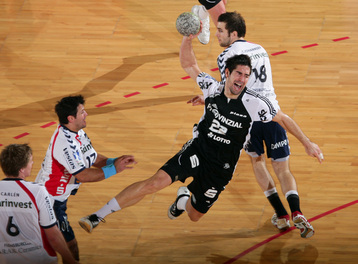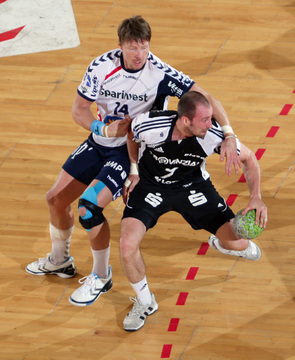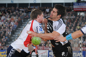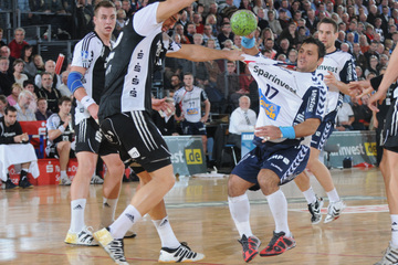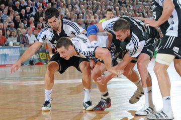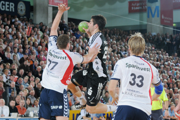 Jubel nach dem Sieg in Flensburg. Nikola Karabatic. Stefan Lövgren wird angegriffen. Nikola Karabatic.