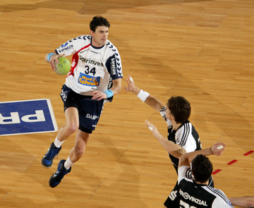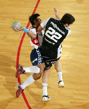 Filip Jicha. Kampf um den Ball. Oscar Carlen. Oscar Carlen und Nikola Karabatic.