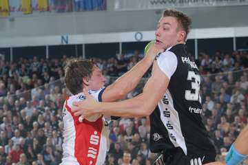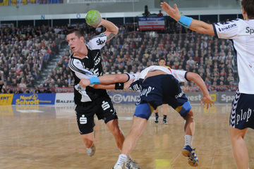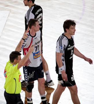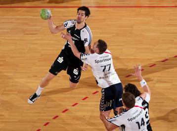 Thierry Omeyer. Alen Muratovic wird gestoppt. Dominik Klein. Vid Kavticnik.