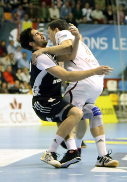 Talant Dushjebaev. Spielszene. Zufriedenheit nach dem Spiel. Abalo gegen Karabatic.