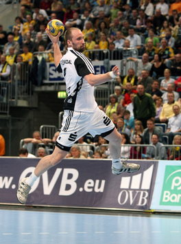 | Oliver Roggisch. | Nikola Karabatic setzt sich durch. | Die Fan-Clubs auf dem Weg nach Mannheim. | Filip Jicha. | |||