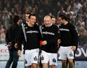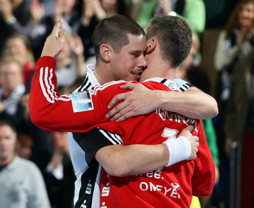 | Jubel. | Stefansson und Entrerrios. | Jubel nach dem Spiel. | Anwurf. | |||