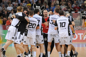 Jubel beim THW nach der Entscheidung in letzter Sekunde. Mariusz Jurasik. Mariusz Jurasik. Abwehrarbeit.