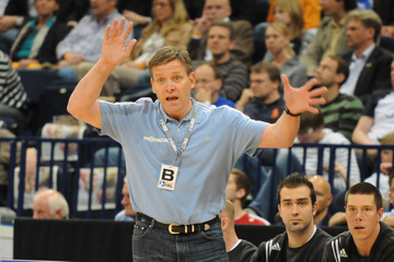 Marcus Ahlm. Löwen-Trainer Wolfgang Schwenke. Dominik Klein. Oliver Roggisch und Henning Fritz.