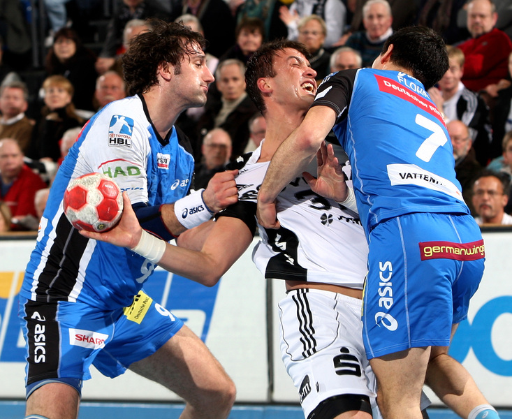 | Blazenko Lackovic. | Auszeit. | Vor dem Anpfiff. | Marcus Ahlm gegen Guillaume Gille. | |||