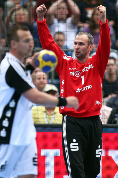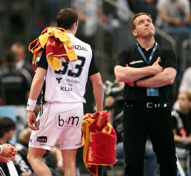 | Marcus Ahlm gegen Didiert Dinart. | Thierry Omeyer. | Ciudad Reals Trainer Talant Dujshebaev. | Die Lanxess arena in Köln. | |||