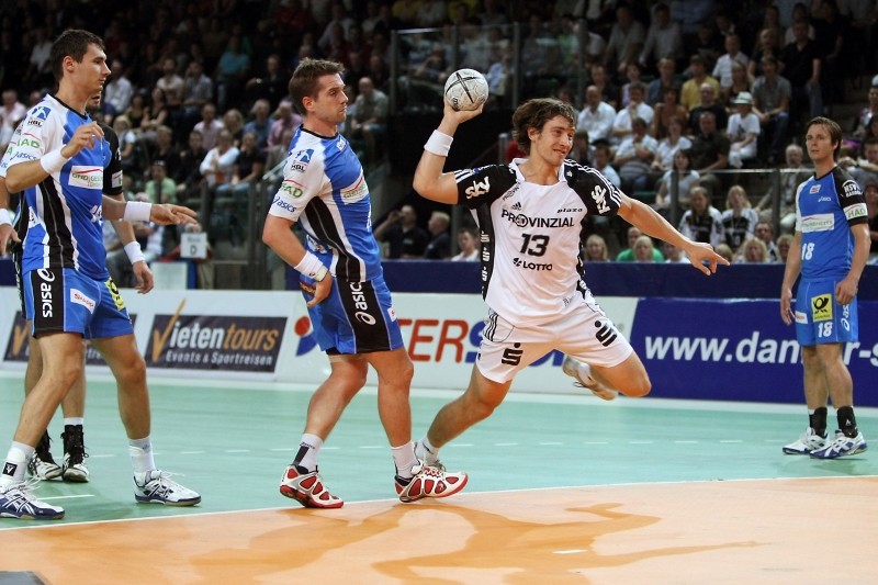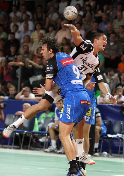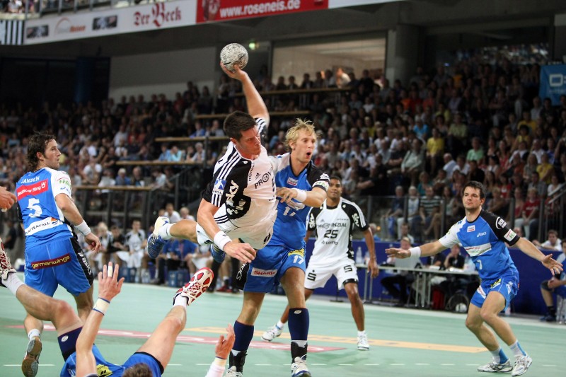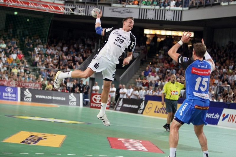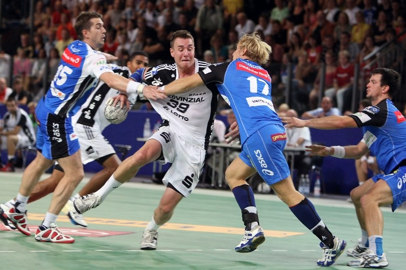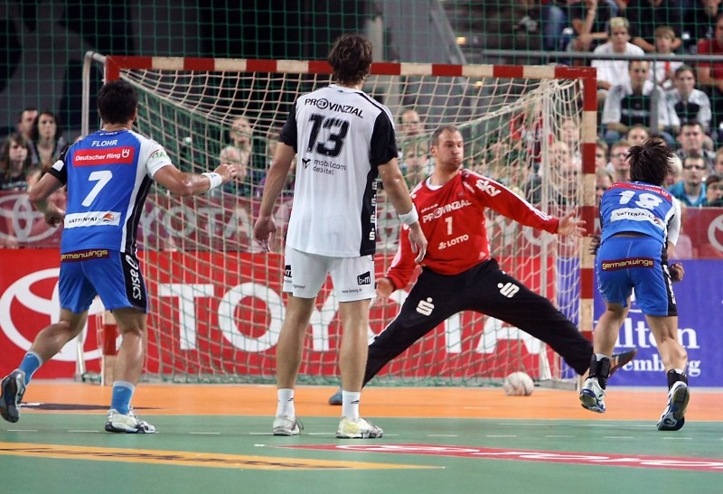 | Domagoj Duvnjak. | Daniel Narcisse wird von Igor Vori attackiert. | Super-Cup-Sieger 2009: Der HSV Hamburg. | Daniel Narcisse. | |||