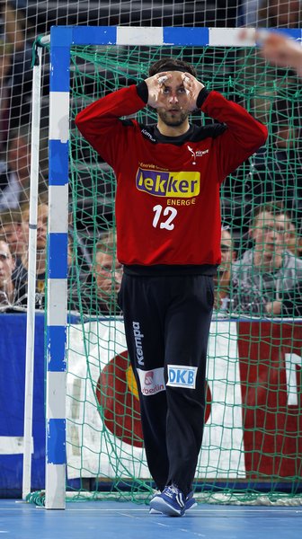 | Iker Romero und Dagur Sigurdsson. | Silvio Heinevetter. | Deckung! | Silvio Heinevetter. | |||
