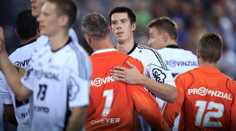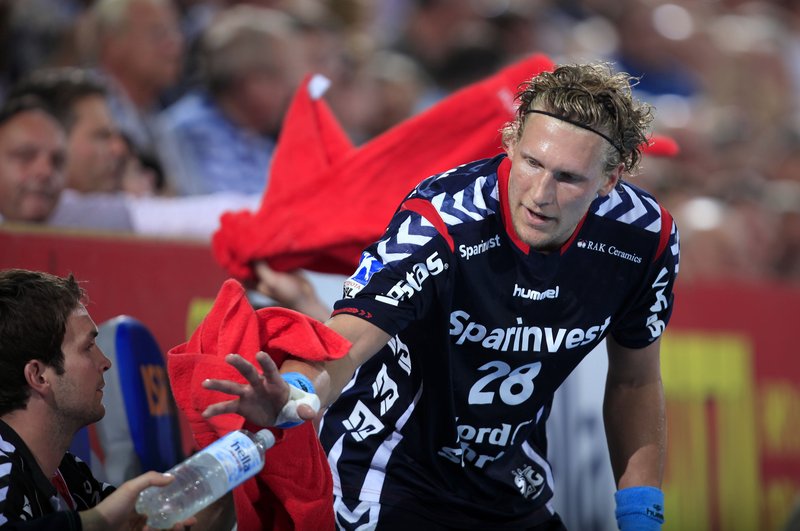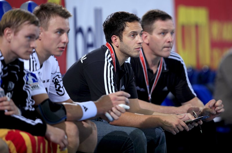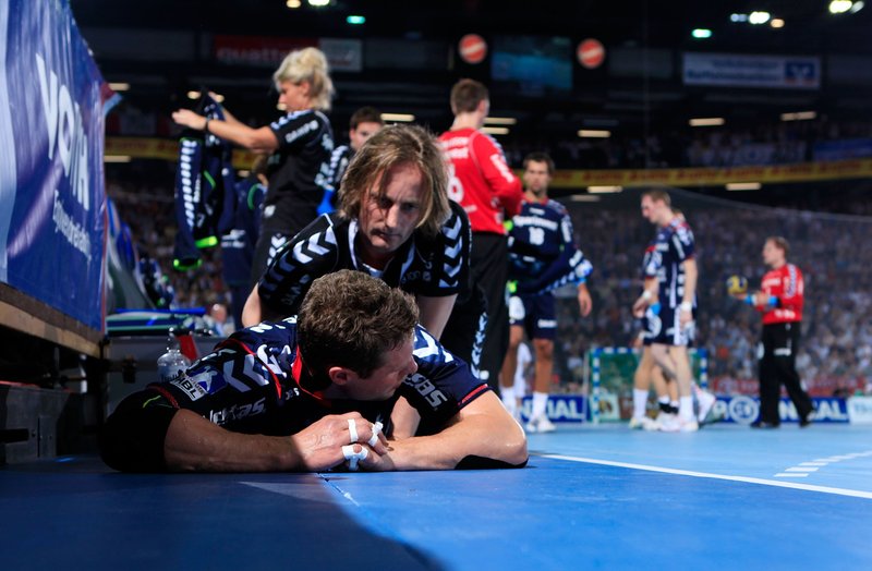 Christian Zeitz verletzt. Christian Zeitz verletzt. Daniel Narcisse und Tobias Karlsson. SG-Trainer Ljubomir Vranjes und Tobias Karlsson.