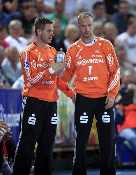 Nach dem Spiel. Dominik Klein. Holger Glandorf. Die Kieler Bank.