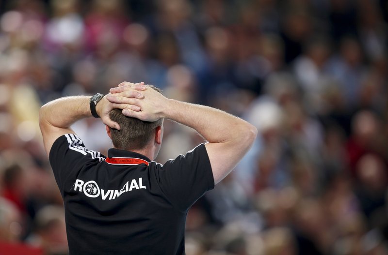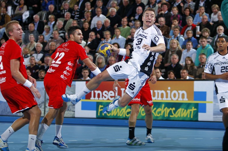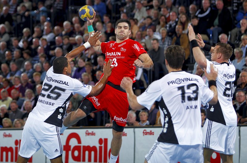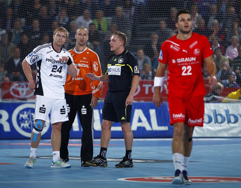 Daniel Narcisse. Alfred Gislason. Melsungens Trainer Michael Roth. Patrick Fahlgren.