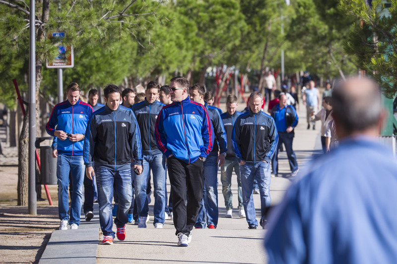 | Spaziergang vor dem Spiel. | Auf zum Spiel. | Auf zum Spiel. | Der Palacio Vistalegre in Madrid. | |||