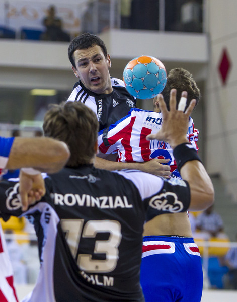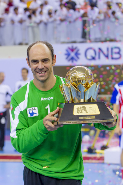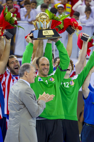 Jose Javier Hombrados mit dem Super-Globe-Pokal. Jose Javier Hombrados mit dem Super-Globe-Pokal. Super-Globe-Sieger 2012: BM Atletico Madrid (ESP). Enttäuschung bei den Zebras nach der Finalniederlage.