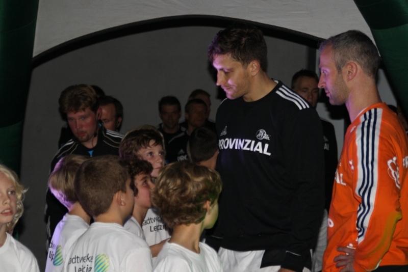 | Vor dem Spiel. | Vor dem Spiel. | Die Kieler Bank. | Volle Halle in Leipzig. | |||