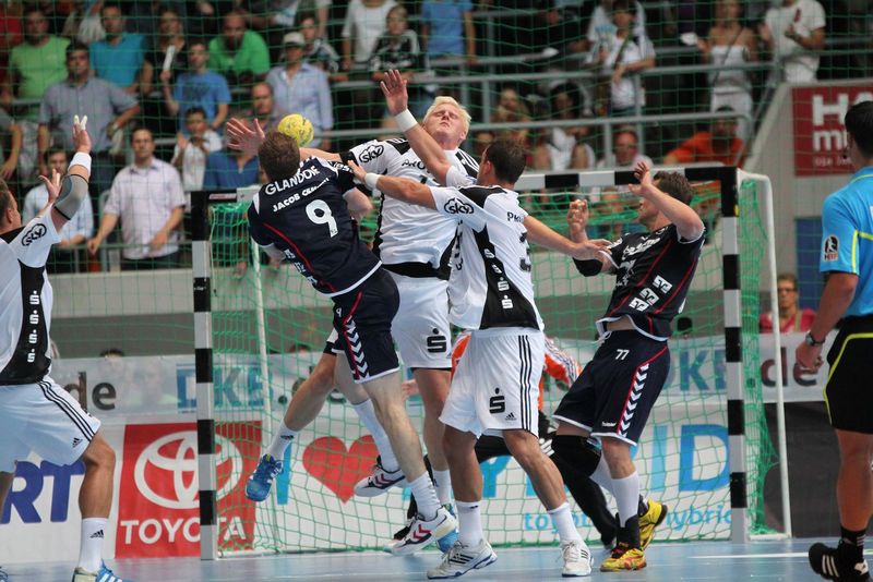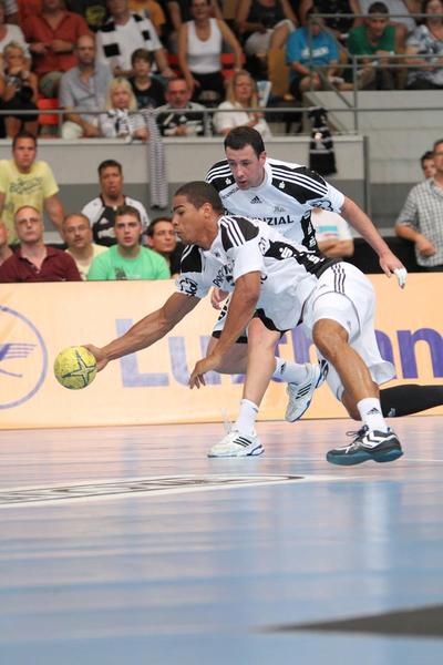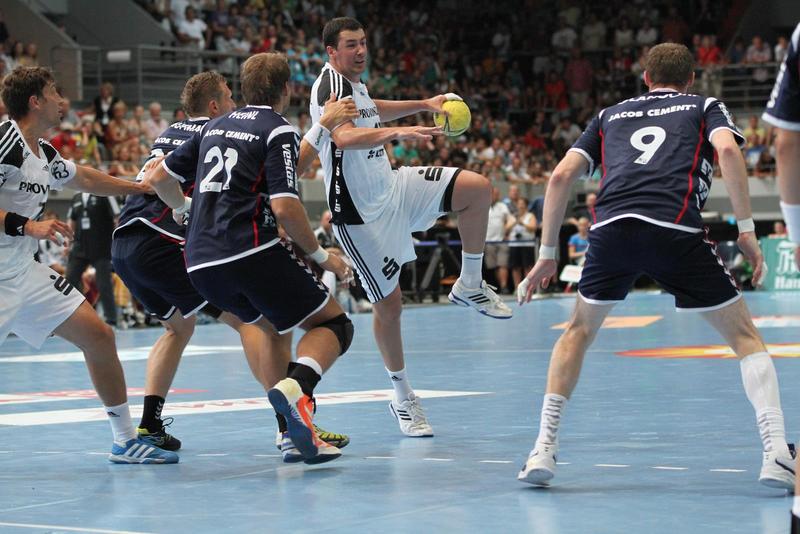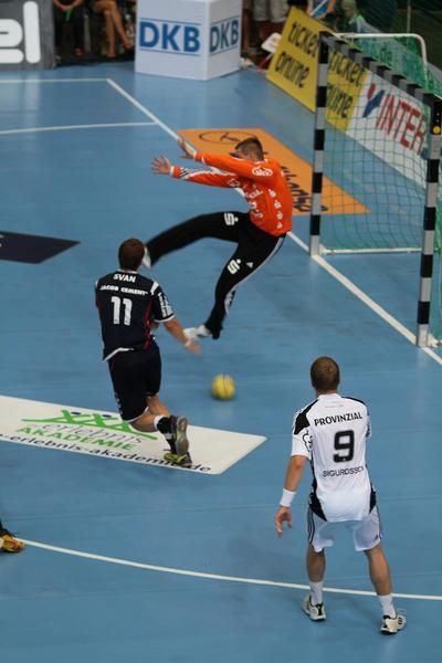 | Aron Palmarsson. | Daniel Narcisse. | Spielszene. | Supercup-Sieger 2012! | |||
